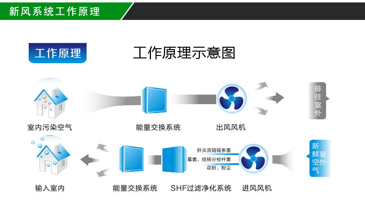 新风系统工作原理示意图 - 西安新风系统|陕西中央新风系统安装|松下新风机价格|机房通风|消防排烟|全热交换机|住宅新风系统--西安雷诺建筑材料有限公司